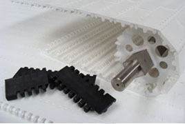 塑料模組網(wǎng)帶又稱(chēng)為塑料模塊帶、塑料鏈板、模組網(wǎng)帶,是由塑料模塊和插銷(xiāo)組合拼裝而成,通過(guò)匹配的鏈輪做驅(qū)動(dòng)。